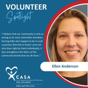 Through Kids Matter CASA, community volunteers are trained to be advocates for children in foster or kinship care. Appointed by the Children’s Court judges to one case at a time, a CASA volunteer monitors the child’s situation, identifies community resources and participates in the court process to accomplish the goal of moving the child to permanency.